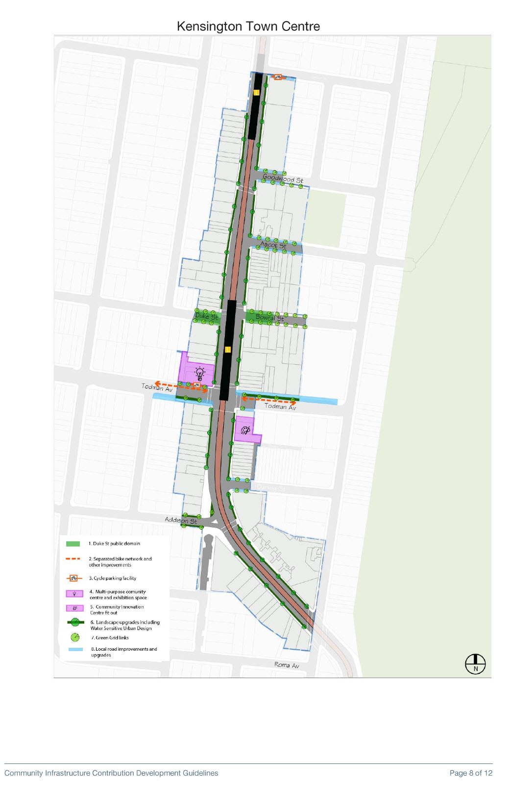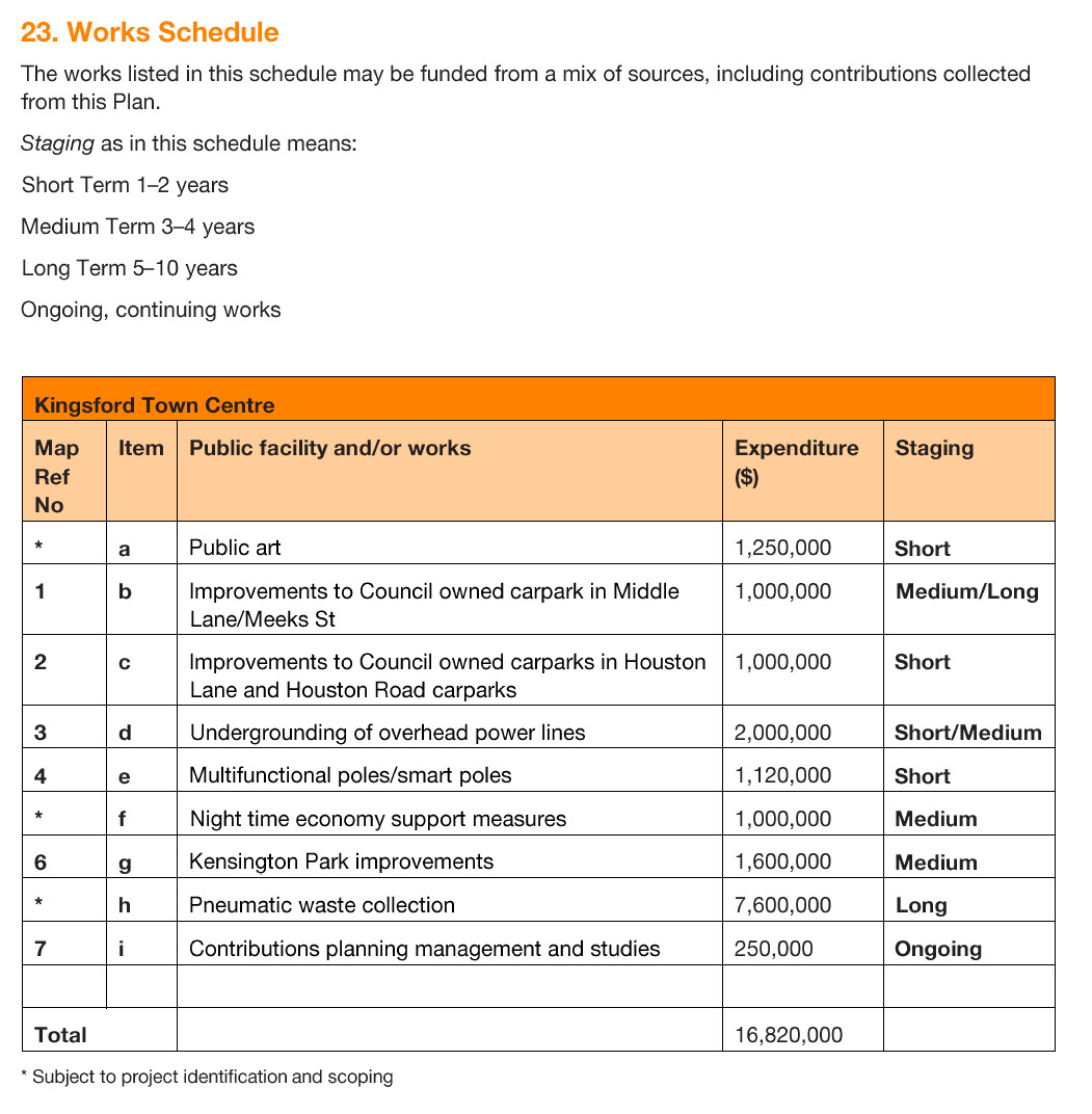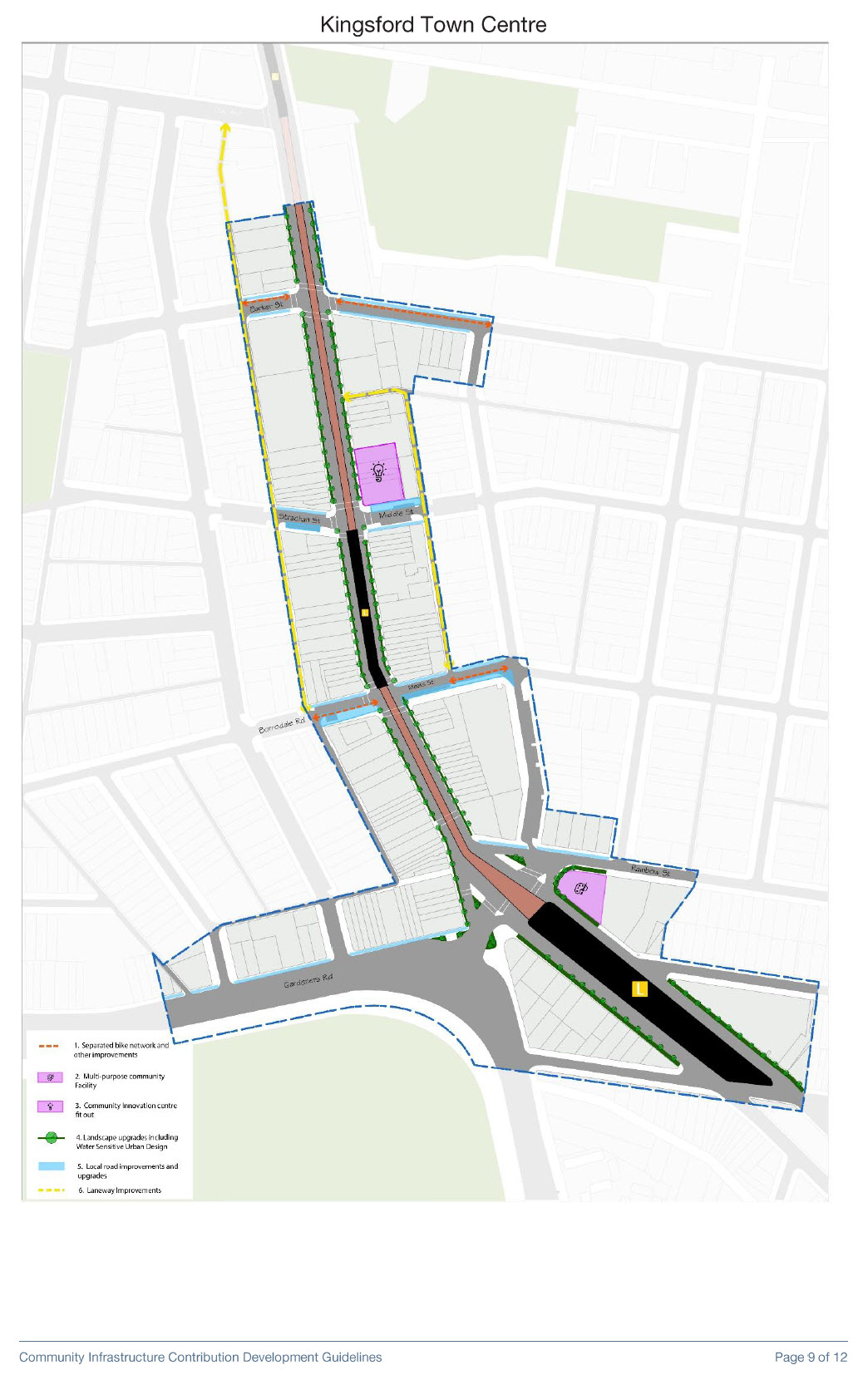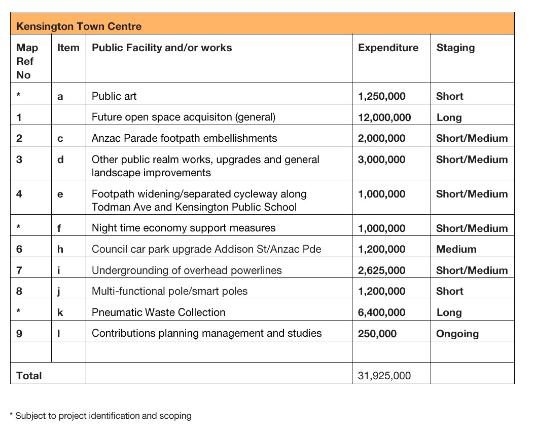 Appendix 3b: Kensington and Kingsford Town Centres – Community Infrastructure Contribution – Development Guidelines outlines how Community Infrastructure is to be delivered as part of the renewal of the Kensington and Kingsford town centres.